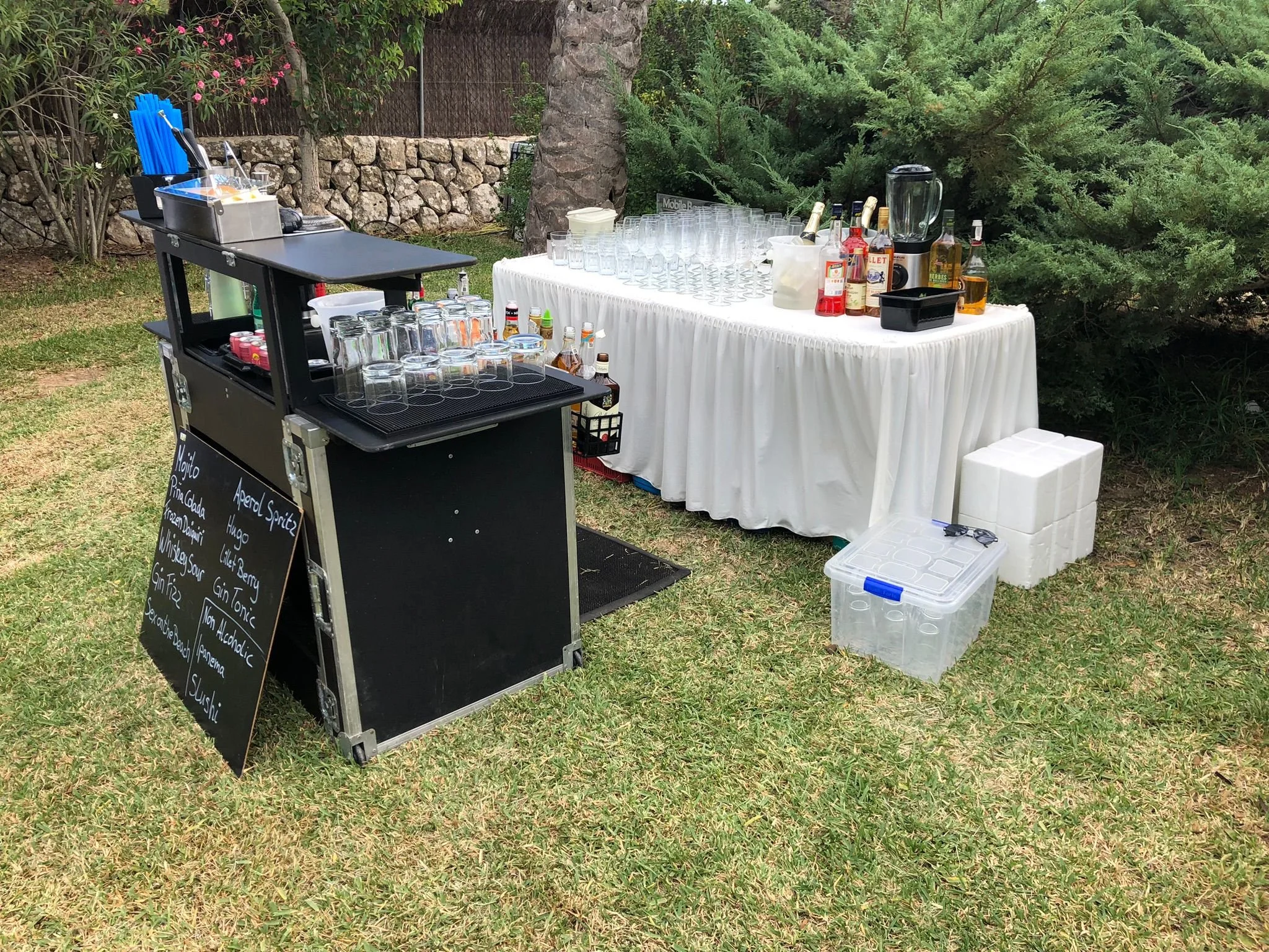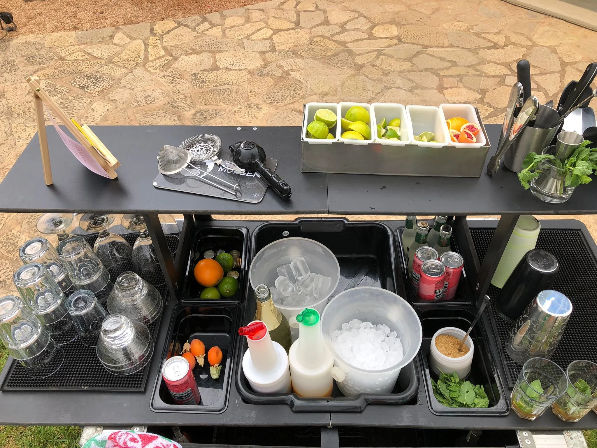 Nuestra barra móvil está equipada con todo lo necesario para una preparación de bebidas profesional y elegante. Aquí tienes un resumen del equipo que llevamos:
