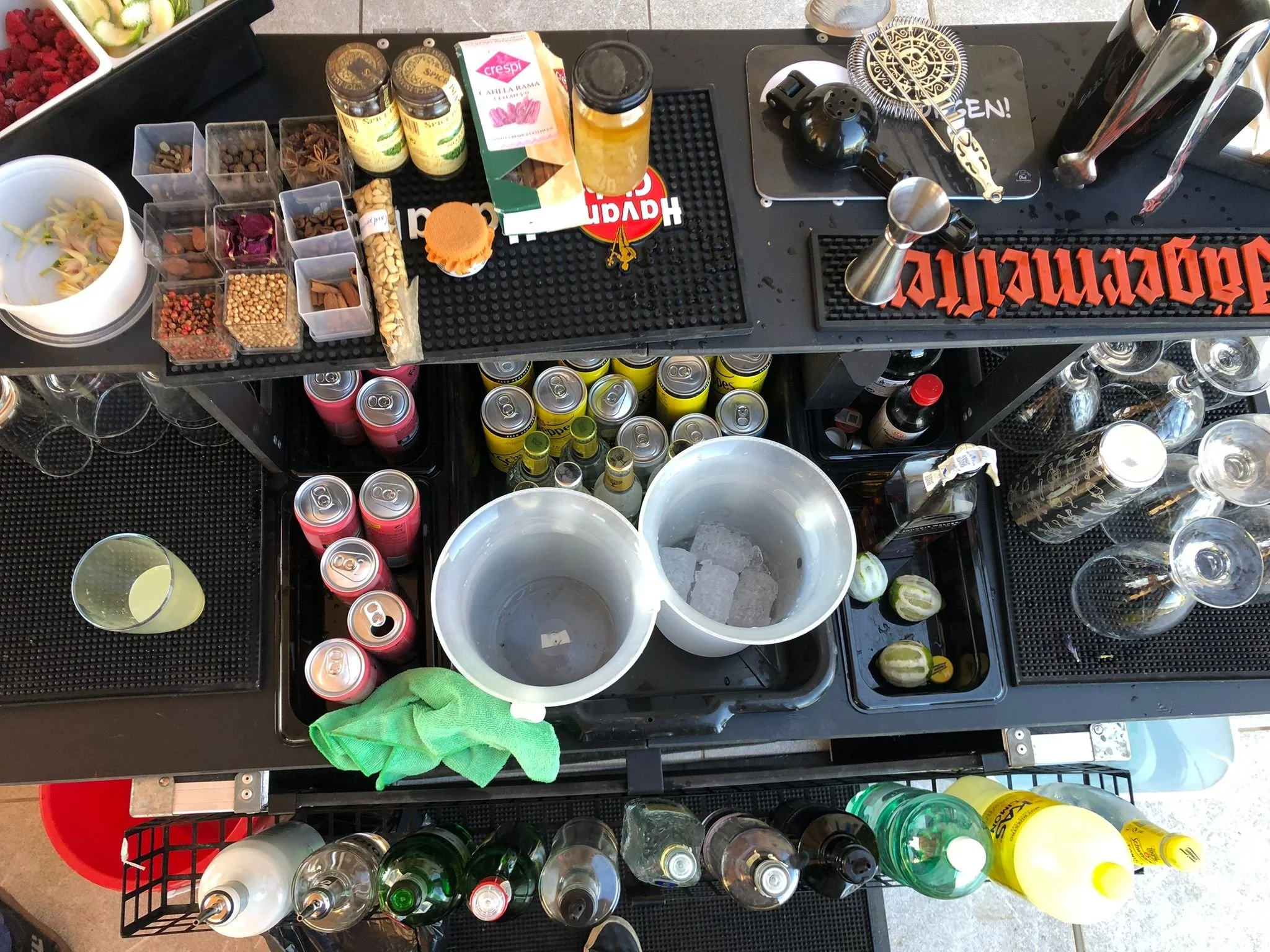 Our mobile bar is equipped with everything necessary for professional and stylish drink preparation. Here is an overview of the equipment we bring: